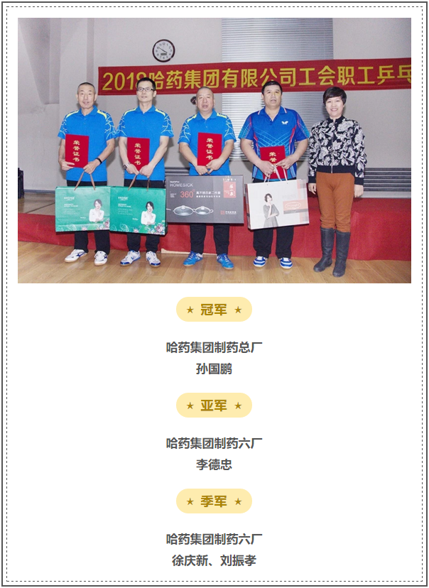 职工乒乓球比赛“终身荣誉运动员”称号!