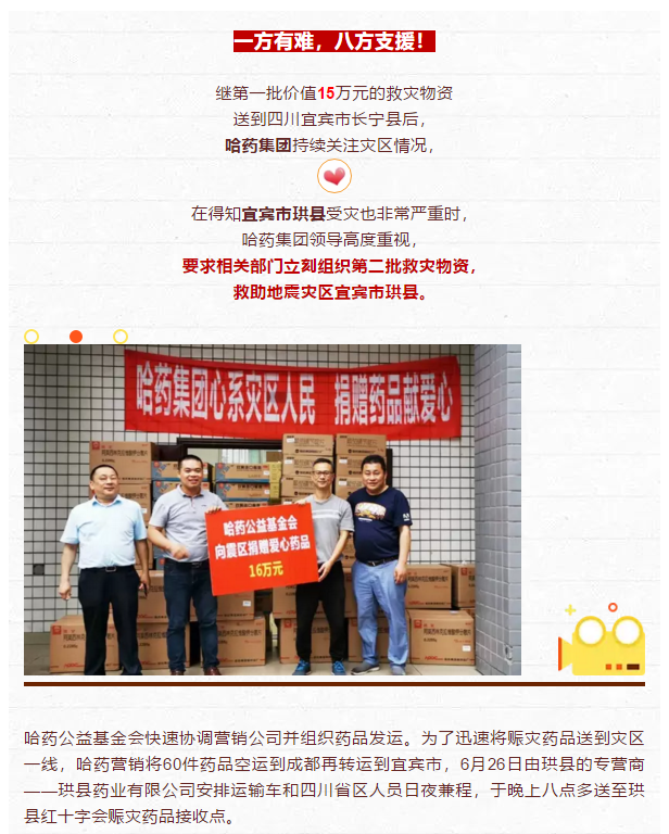 澳门赌场网上娱乐888集团第二批16万元的救灾物资送至宜宾珙县 已累计为灾区捐赠价值31万元急需药品